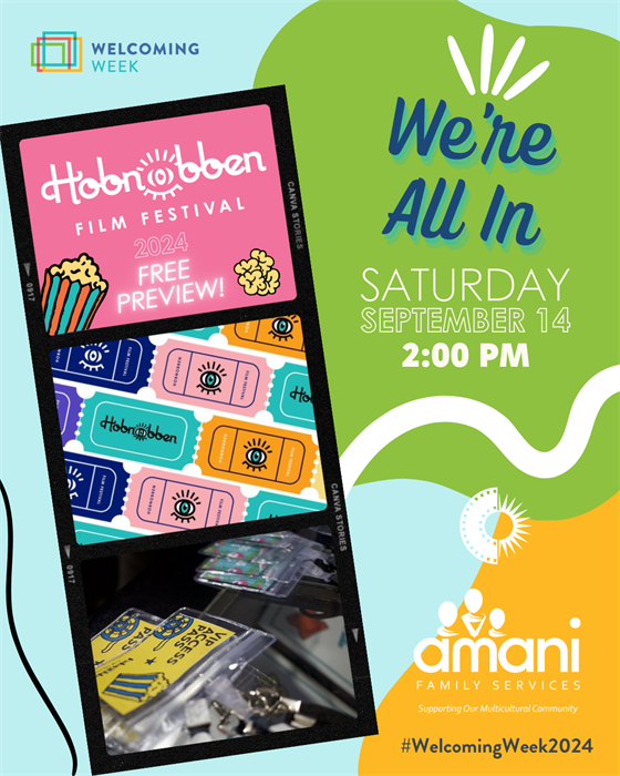Amani Family Services is excited to celebrate Welcoming Week by hosting a special preview of short films from the 2024 Hobnobben Film Festival! This event aims to highlight the beauty and diversity of Fort Wayne by showcasing stories from various cultures, fostering a sense of belonging and inclusivity within the community. Attendees will have the unique opportunity to experience a curated selection of powerful and thought-provoking films that emphasize themes of identity, acceptance, and resilience. Join us for an evening of cinema and community, where stories transcend boundaries and bring people together in the spirit of unity and understanding.